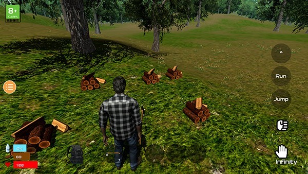 4、砍伐树木能够获取木头,木头具备生火、建造房屋等用途。操作时需留意角色左下角的健康状态,并及时进行补充。
