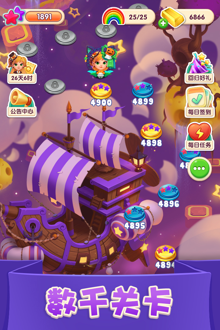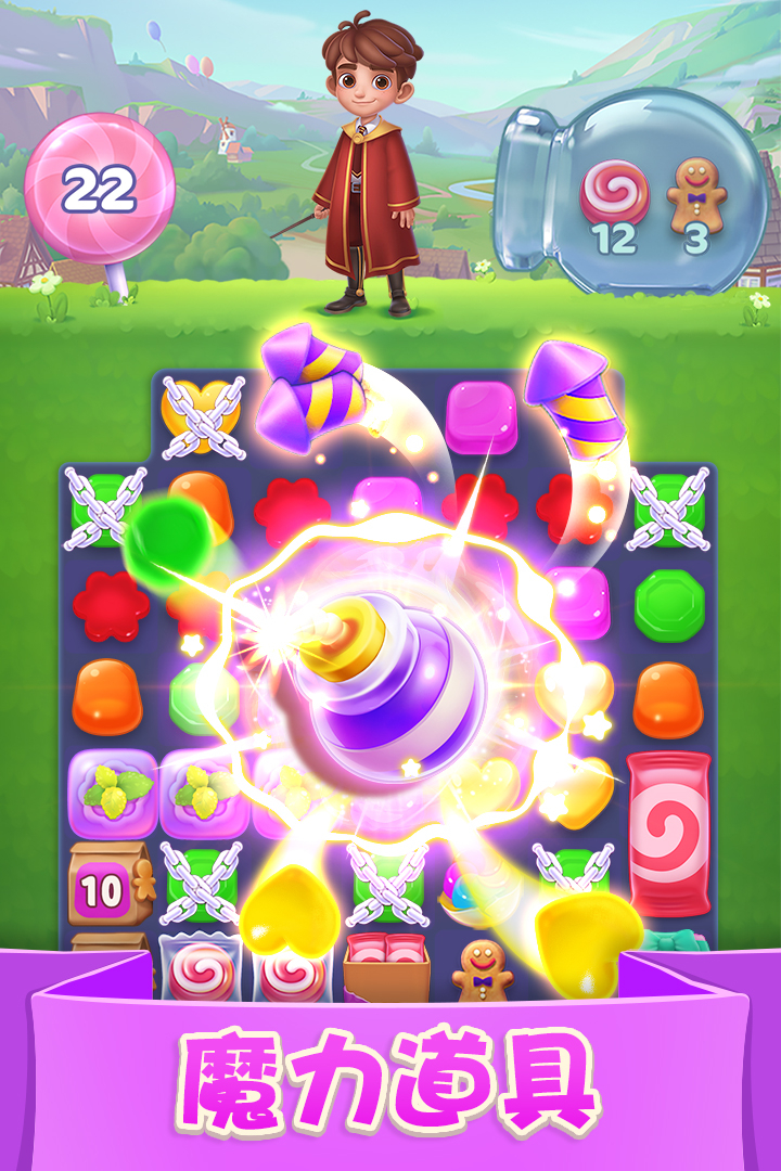 装扮系统:自定义糖果特效与背景音乐,打造个人专属消除风格;