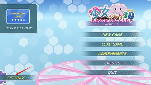 1、下载并安装《少女都市》后就能运行,进入主界面,点击左下角的“settings”。