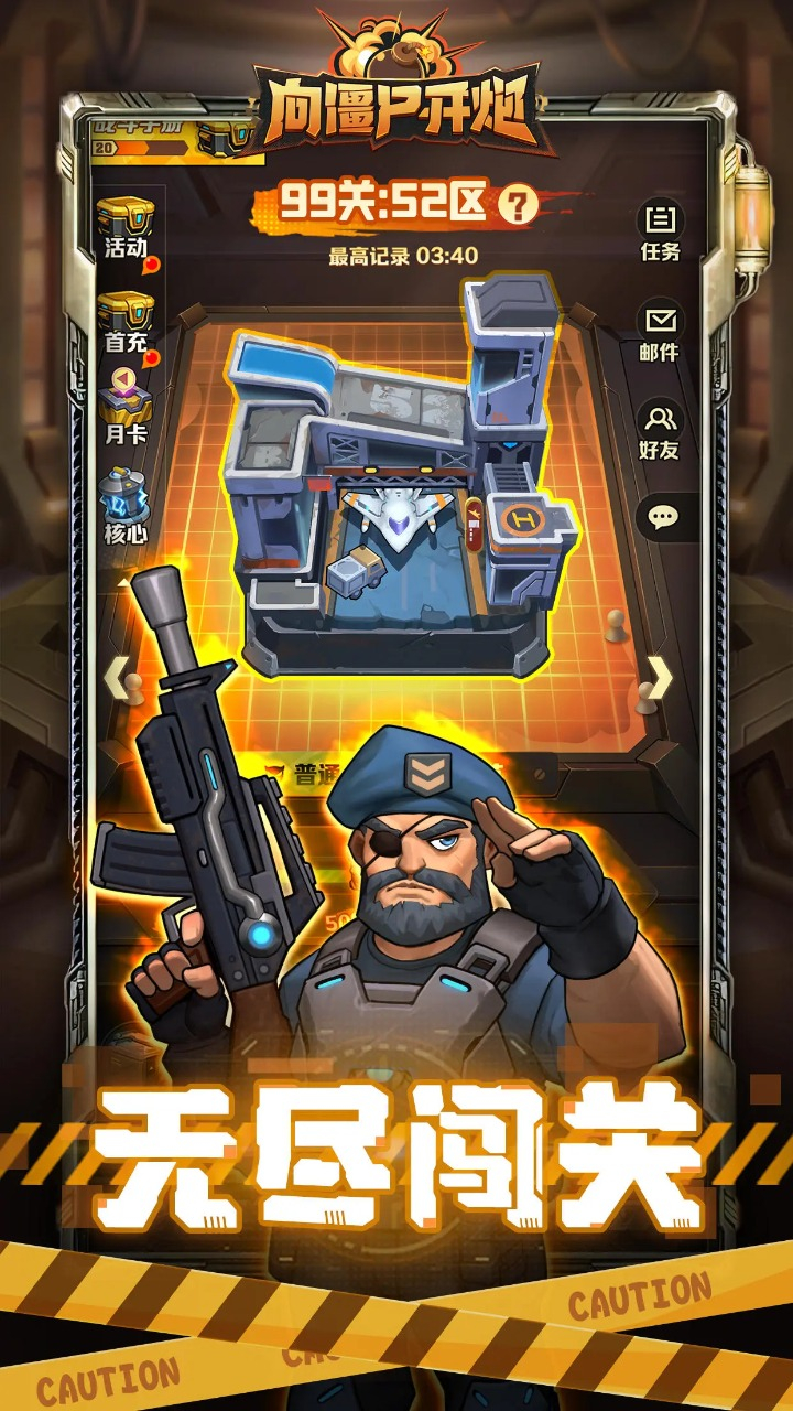 《向僵尸开炮》这款射击游戏,以末日生存作为背景。玩家会身处一个僵尸肆虐的末日天地,化身成为一名英勇的幸存者,借助收集资源、升级武器等方式,和蜂拥而至的僵尸展开白热化的对抗,守护好自己的生存基地。