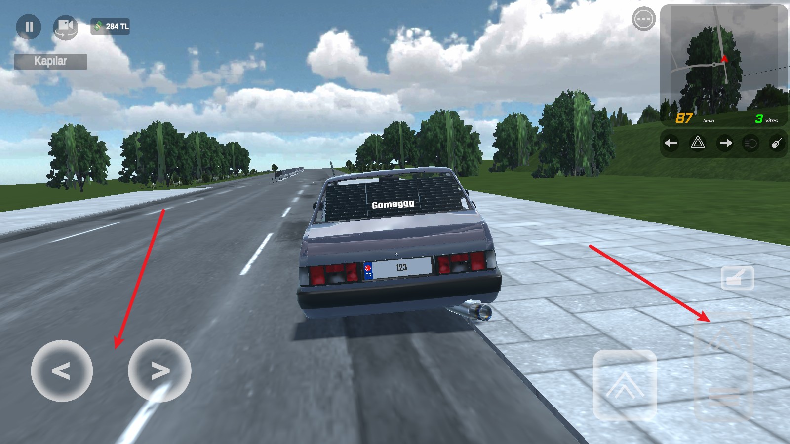 3、游戏中,左侧控制转向,右侧的长踏板则为油门,控制车辆前进。