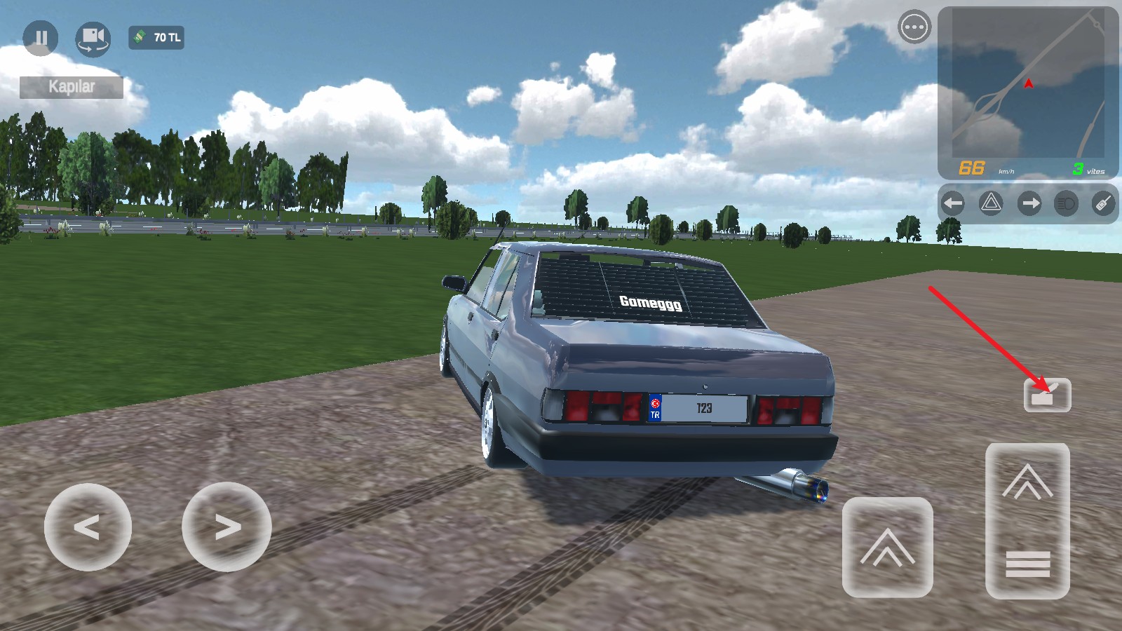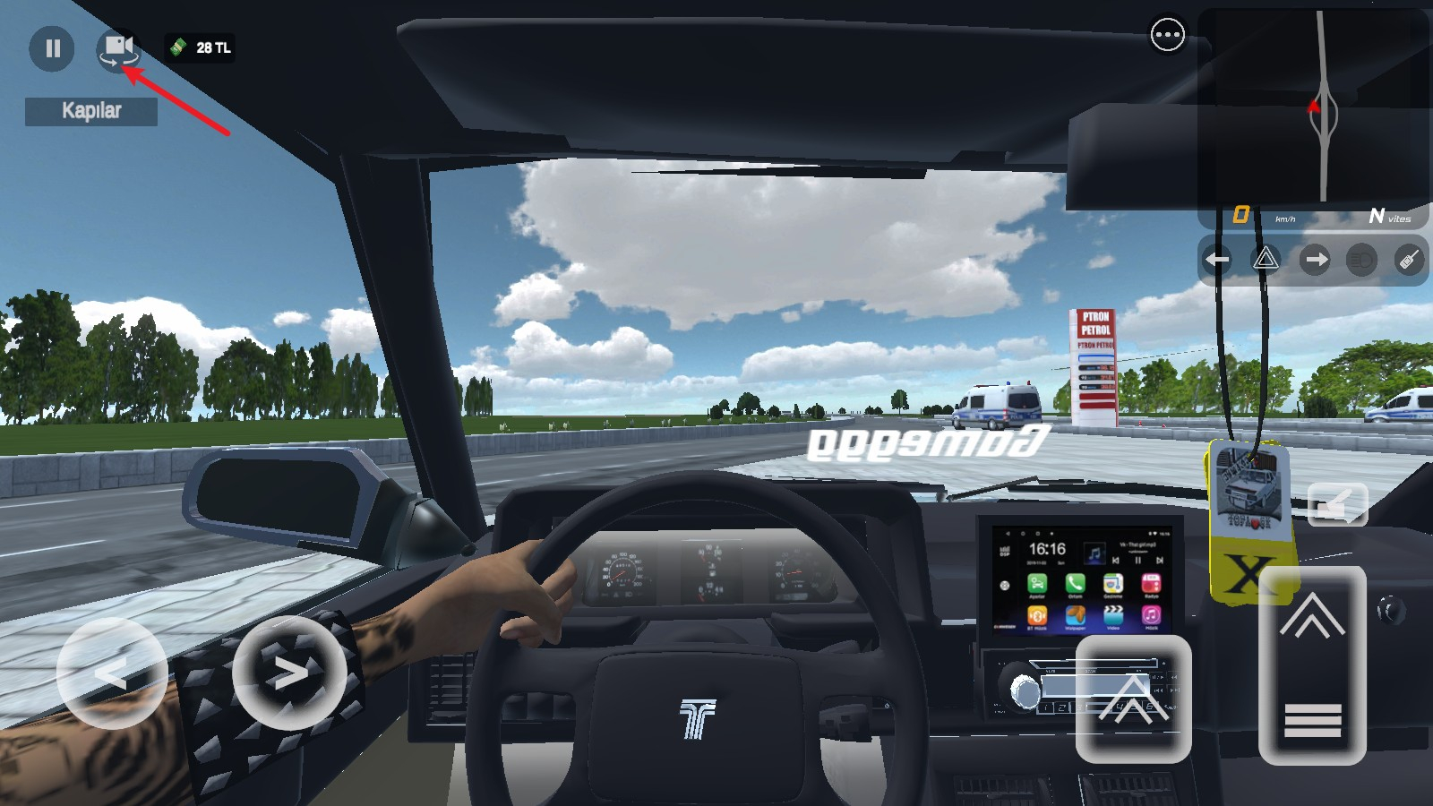 4、短踏板为后退,并且还会切换成为倒车视角。