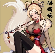 胡媚娘主动技能会吃掉周围的召唤物,获得随机属性(会心、阴魂等)。
