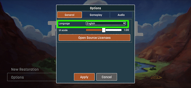 1、运行游戏,在设置好自己的语言后,即可找到并点击“新恢复之旅(New Restoration)”按钮选项开始游戏;