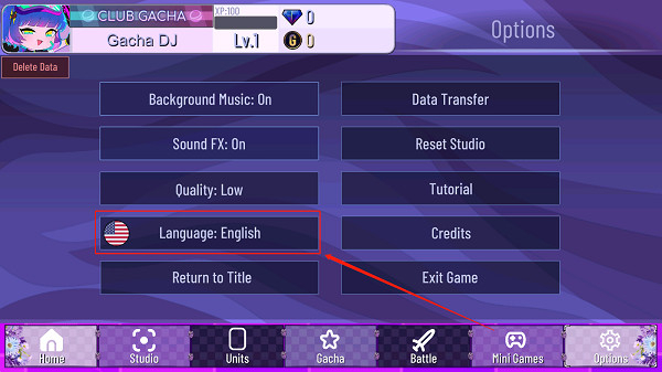 1、打开加查薰衣草俱乐部版游戏,点击右下角的“Options”设置。