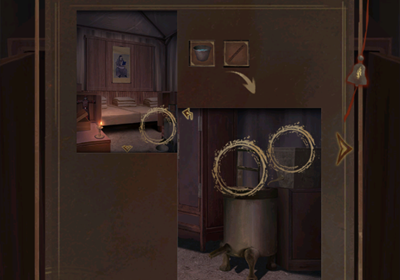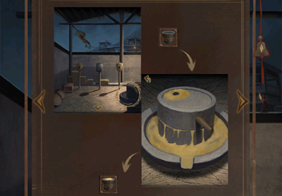 29、在箱子里获取道具铜压杆与木制轮毂,前往压水台,把铜压杆安装妥当,接着将空木桶放在压水台下方,点击压杆,压出的水会把木桶装满。