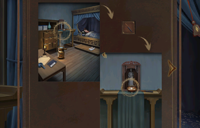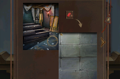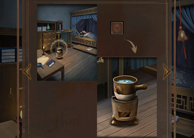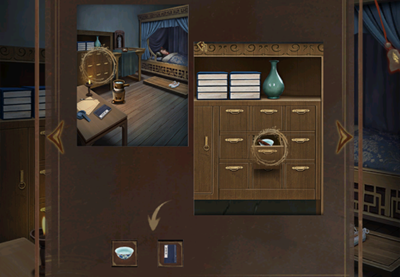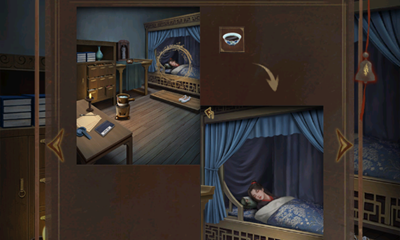 15、完成机关获得铜钥匙,使用铜钥匙打开床榻边的柜子,打开从里面获得士兵的盔甲。