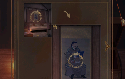 12、之后点击场景墙上挂画,查看腰带的图案顺序:黑黑白黑白白白。