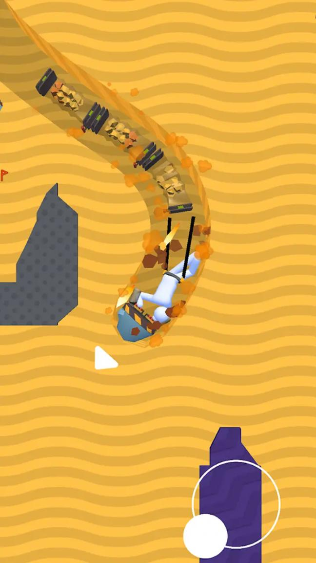 1、点击屏幕控制挖掘机的运动,躲避障碍物,挖掘地下宝藏;