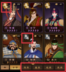 在游戏中,武将品级划分为四个等级,从低到高依次是:良将、名将、盖世、传奇。武将品级会十分直观地展示在武将的左上角(如图所示)。