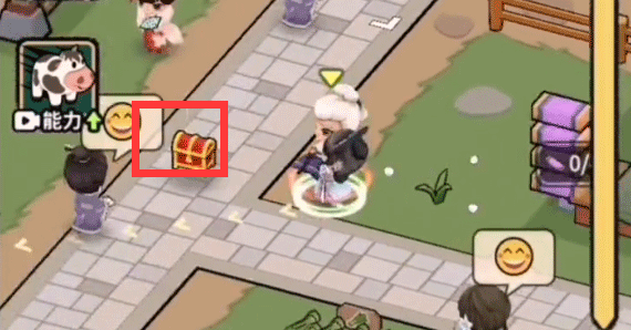 2、此刻,我们别急着把老奶奶送到指定位置,而是先去寻找游戏宝箱并将其打开。