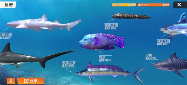 6、钓到的鱼儿重量越重,稀有度越高,评分越高;