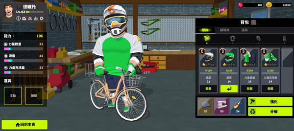 2、健身房锻炼:锻炼也能增加自行车最高速度、总能量值等属性。