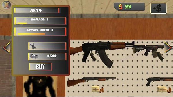 6、对于每种武器,我们都能了解到其名称、伤害、攻击速度、子弹以及价格等信息。例如,AK74的价格为2500美金。