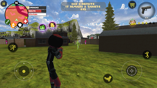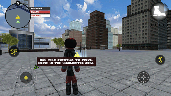 1. 开启火柴人绳索英雄的最新版本,进入游戏后,玩家将操控一名火柴人展开冒险。通过滑动左侧轮盘能够控制角色移动,点击右侧按钮则可执行攻击动作。