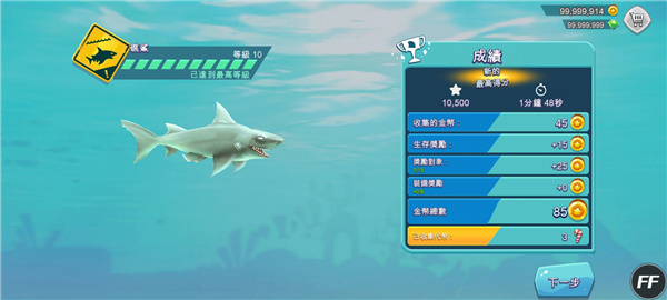 持续使用加速功能会致使鲨鱼饥饿度上升,玩家需留意这两者间的关系,切勿随意加速,以免浪费鲨鱼的体力。