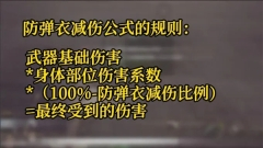 防弹衣减伤公式的规则是:武器基础伤害*身体部位伤害系数*(100%-防弹衣减伤比例)=最终受到的伤害