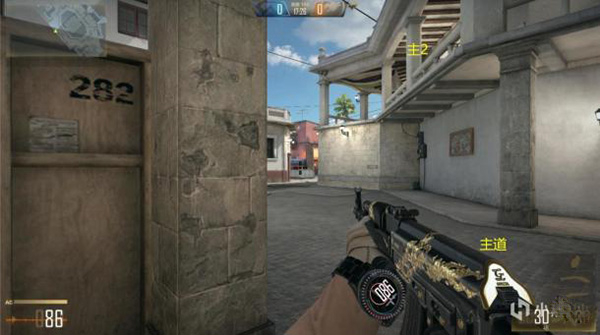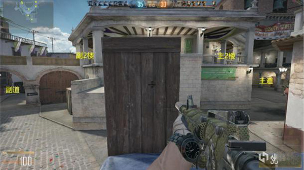 该点位视野优秀,可以同时兼顾主道和副道,缺点是没有适宜的掩体,唯一的掩体还是可被穿透的木板。为了避免自己成为靶子,建议灵活换点,在进点台阶处、点位侧方不断转点攻击敌人。