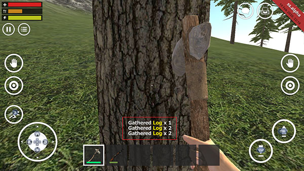 3、在砍伐过程中,会听见砍树的声响,与此同时,屏幕中间会出现“Gathered Log ×数字”的字样,这里的数字代表的就是搜集到的木材数量。