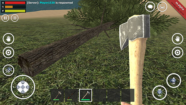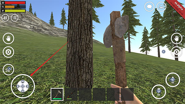 1. 当进入游戏画面后,点击屏幕左侧的方向盘来操控角色移动,朝着要砍伐的树木靠近。
