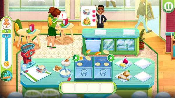 4、助力餐厅装修与员工管理,玩家能够自主定制餐厅风格,提高服务效率,增加营业额。