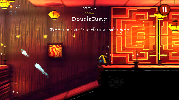 3、注意搜集一路上黄色的忍者精华,在游戏中,左上角会以百分制的形式,来告诉玩家搜集的情况如何;