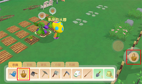 最后使用农具里面的“篮子”收获农作物即可。