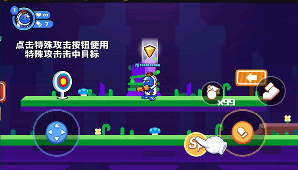 6、点击特殊攻击按钮使用特殊攻击击中目标;