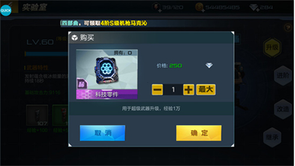 3、等级不同的科技零件增加的超级武器经验也是不相同的~赶快得到科技零件升级自己的超级武器来增加战斗力吧!