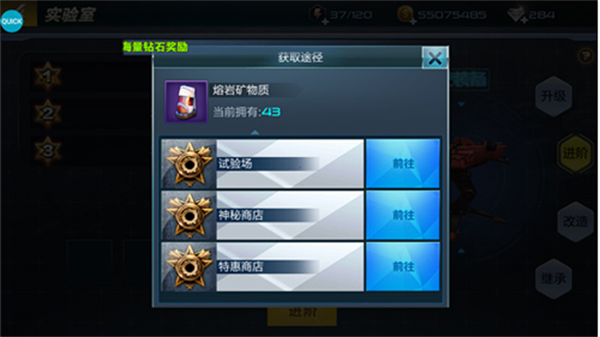 2、在玩家通过试验场模式之后,会得到矿物质这种材料。(冰川试验室获得冰川矿物质,熔岩试验室获得熔岩矿物质)