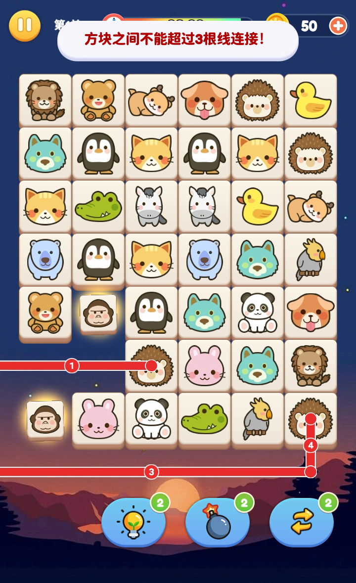 天天连连看,一款充满复古韵味的宠物连接消除游戏。它不仅原汁原味地还原了经典的连接消除玩法,还在画质方面进行了升级优化。玩法十分简单,只需把两个相同的图案连接起来,就能实现消除操作。当画面中的所有宠物都被成功消除后,便可进入下一关。这里要特别提醒一下,只有相连步数在三步以内的图案才能消除。要是碰到难关难以通过,也无需担忧,游戏内丰富多样的道具,会助力你轻松攻克游戏中的各个关卡。