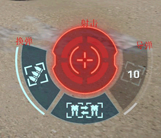 现在我们来说攻击区域,我们可以在右边看见有一个类似于控制台的按钮可以用,这写东西分别为射击、换弹、导弹以及自动瞄准。