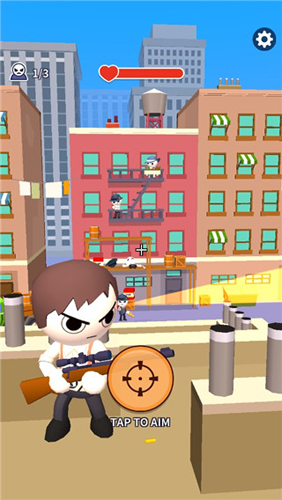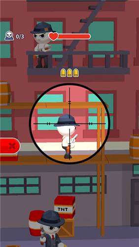 1当游戏下载完毕,你们便能正式开启游戏,踏入游戏世界。进入游戏后,点击瞄准镜,即可着手枪杀那些敌人。