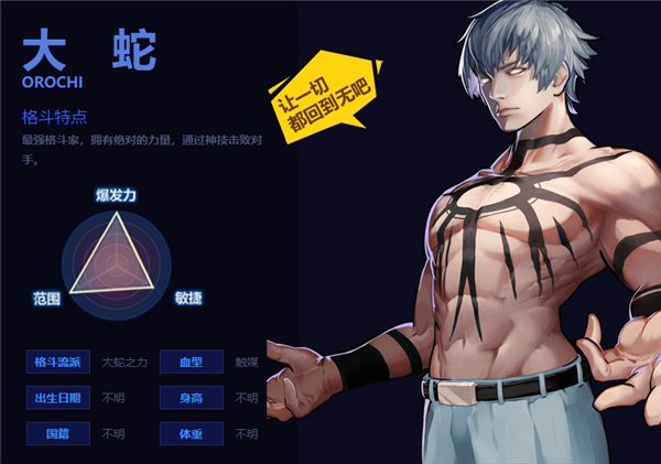 特点:最强格斗家,拥有绝对的力量,通过神技击败对手。