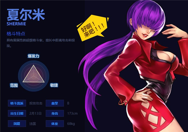 特点:近战角色,八神流古武术,连击狂野残暴、爆发力强。