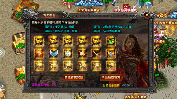 【首充礼包】居多奖励,豪华阵容一次领取,快人十步!
