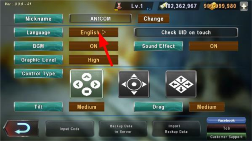 2、进入设置界面后,持续点击该按钮,直到出现简体中文为止。