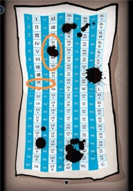 把点燃的蜡烛放置在蜡拖之上,接着把空罐头放上去,此时竖着从左向右看,会得到两个古罗马数字:IX、XV 。然后借助柜子下面的古罗马数字表,就能得出密码915 。