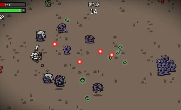 总共20波敌人,每一波时间从20秒逐渐增加到90秒,结束后会开启商店,商店可以购买道具和武器,也可以消耗材料来刷新。