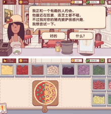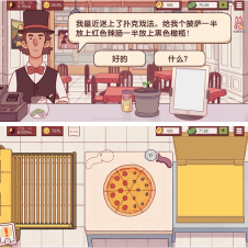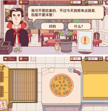 2、游戏的开始会有傲娇的隔壁披萨店老板来教你如何制作披萨,之后的制作过程就需要你自己完成啦。