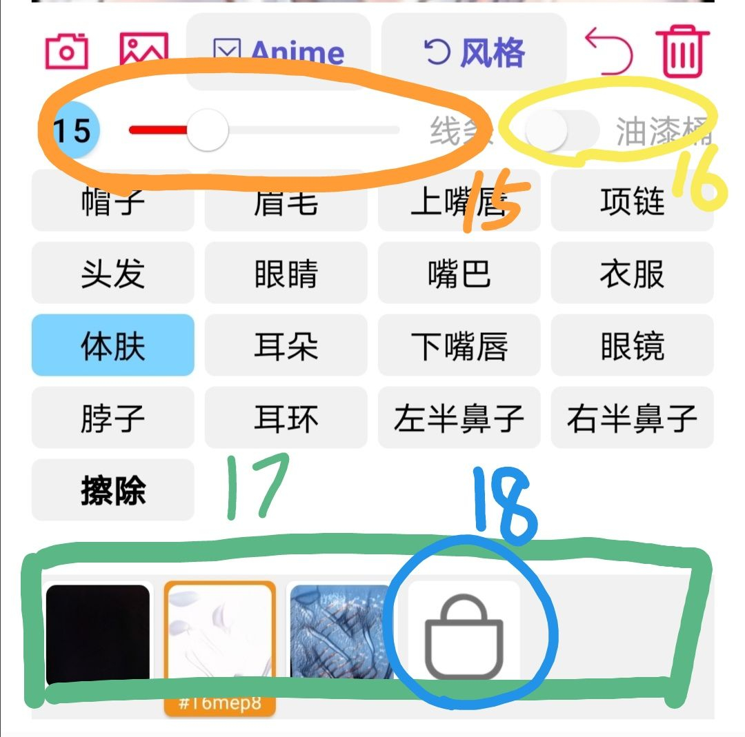 ⑰收藏的风格(点击左上角星星⑤可以收藏风格)