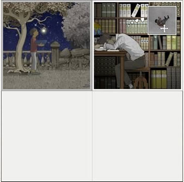 3、点击第二格的缩放按钮移动到图的右侧,如上。男孩在储物室找到一个蓝色的盆子