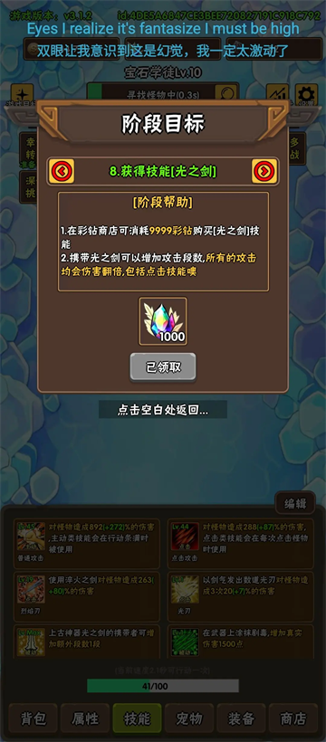 当开启下一难度时,你会察觉到稍有吃力。此时,就需要积攒彩钻来购买第二个神技——光之剑(伤害翻倍且属于独立乘区)