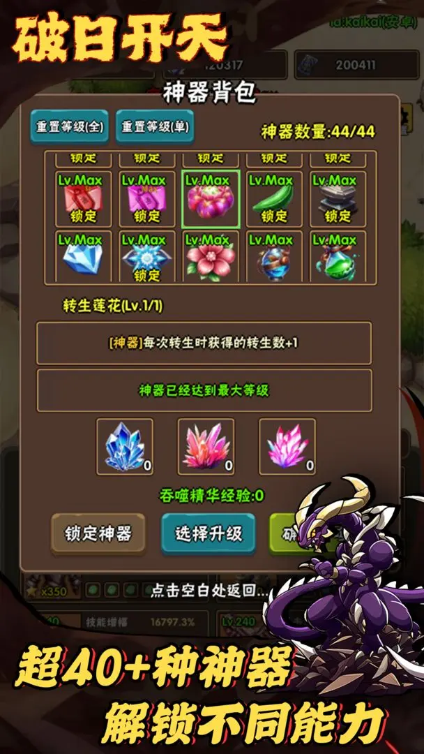 《破日开天》官方版本(内含兑换码),这是一款具备自动转生与合宠机制的放置养成类游戏。游戏中职业丰富多样,技能各具特色,神器别具一格,宠物更是海量云集。其玩法充满趣味,玩家无需爆肝,也不用氪金,同时还具备精美的游戏画面,能够为玩家带来超棒的游戏激情与乐趣。喜爱此类游戏的朋友,欢迎前来下载体验。