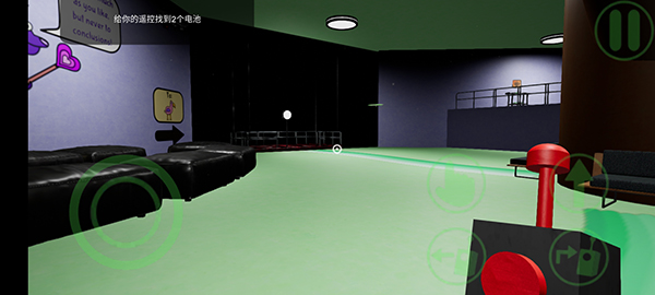 1、刚进入游戏,需要先找到两枚电池,一枚电池在挂有电视机的高台上的角落里,点击拾取这枚电池