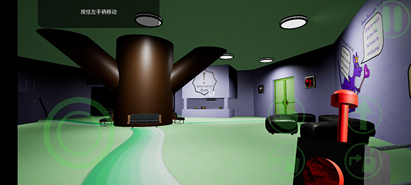 3、当收集齐两枚电池,就能把遥控器修好。随后前往绿色的大门处,此时可以瞧见门的左右两侧各有一个红色按钮。