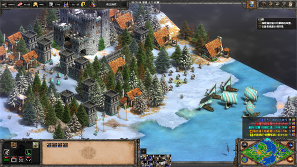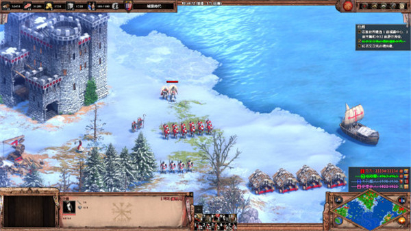 3、升至城堡时代后,于格陵兰东北角(1点钟方位)登陆,寻得一只企鹅,建造一座城堡以稳固阵脚。接着制造冲车与骑士,用以消灭格陵兰的城堡、军营以及城镇中心(TC) 。待其投降后,便会成为盟友,届时海蠕虫所在地区将会在地图上呈现出来。