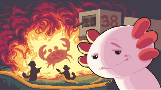 不管是故事的推进,还是游戏的整体基调,《AK蝾螈》总会使我忆起多年前玩过的《愤怒的小鸟》。在这款游戏中,蝾螈原本一直过着自在又闲适的日子,然而,在一个月黑风高的夜晚,意外陡然降临,几道黑影偷偷潜入了营地。有一只蝾螈从睡梦中醒来后,惊愕地发现食物与幼崽竟全部不翼而飞……