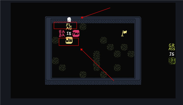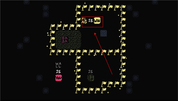 2、这个时候我们控制的就不是baba了,可以控制墙壁,向下滑动用墙壁触碰旗子