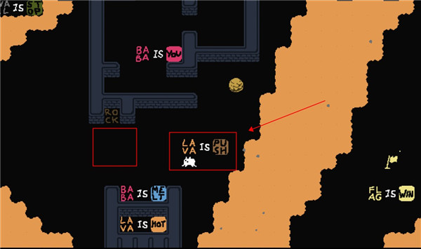 3、将这一块岩浆推开就可以通关了
